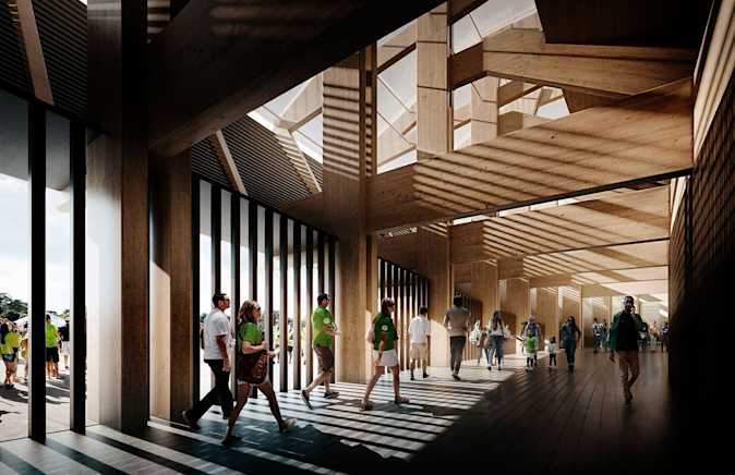 An architectural masterpiece made almost entirely from wood – nature’s renewable building material.